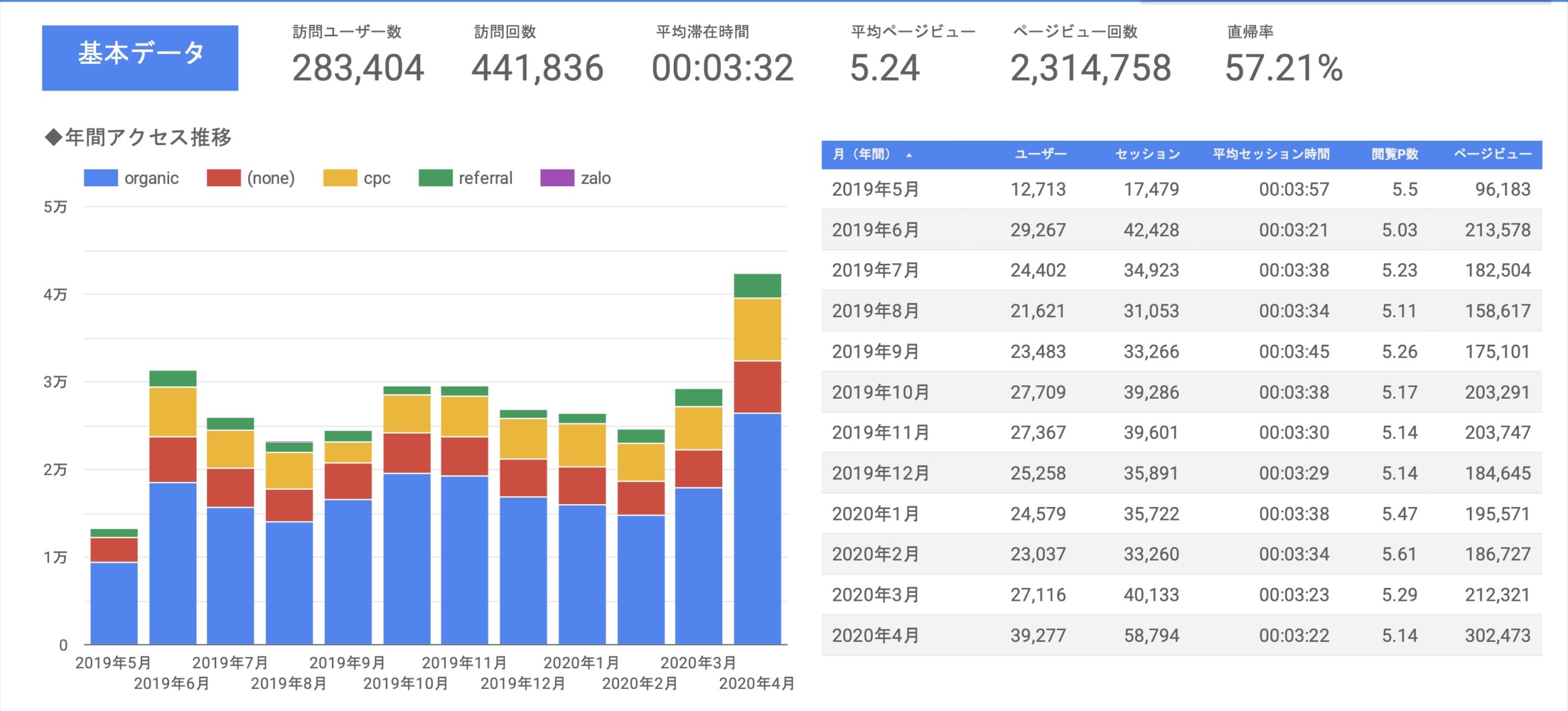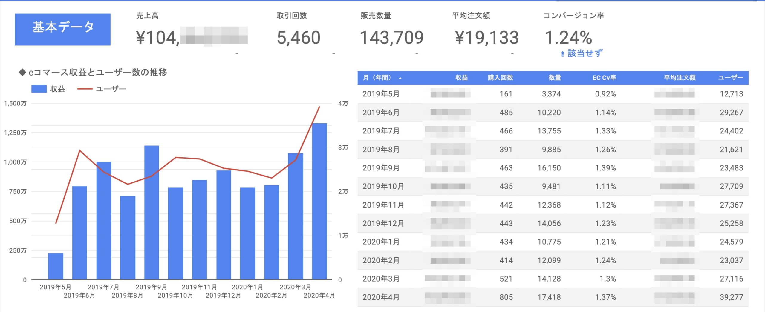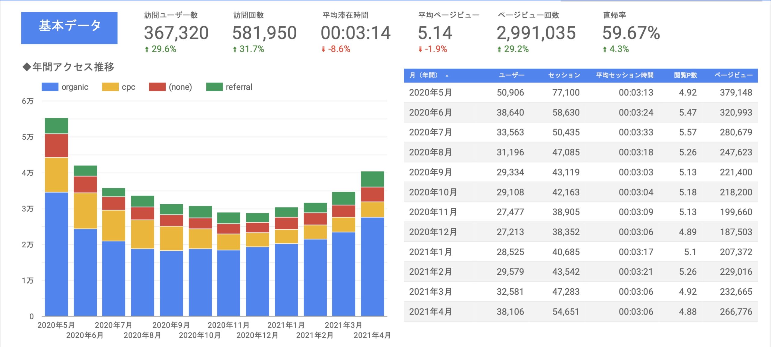 弊社が関わり始めた2019年5月〜2020年4月のデータがこちら。